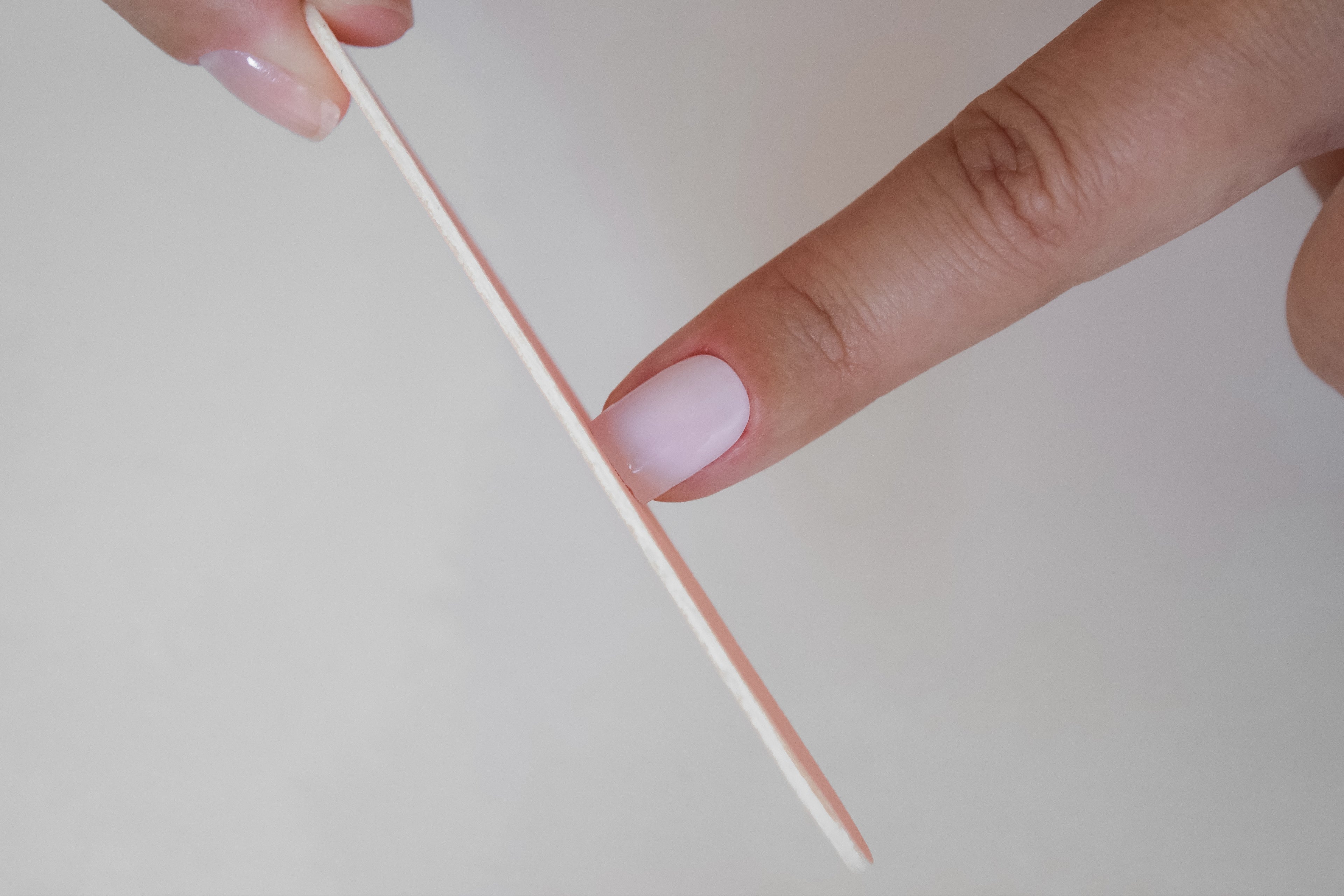 Lava y seca bien tus manos. Lima suavemente y empuja las cutículas.